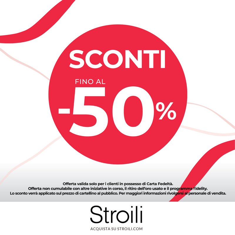 Ti aspettiamo in tutte le gioiellerie Stroili Oro con sconti fino al 50%!