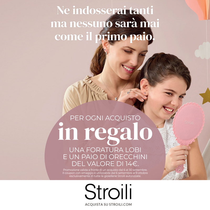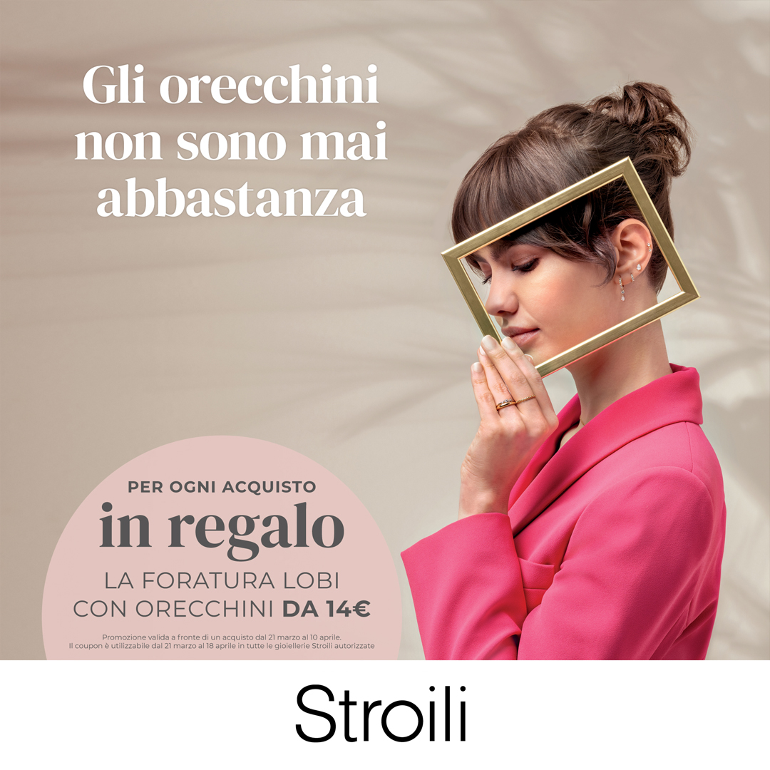 Da Stroili acquistando una coppia di orecchini dal valore minimo di 69€, in omaggio la foratura lobi!