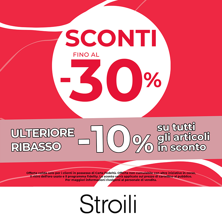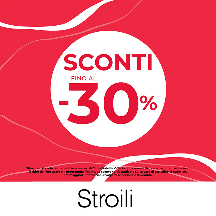 Se acquisti un gioiello o un orologio da Stroili sul secondo articolo meno caro hai diritto a uno sconto del 30%!