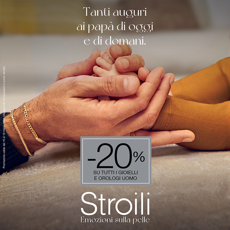 Da Stroili rendi speciale la festa del papà con il 20% di sconto su tutte le collezioni uomo.